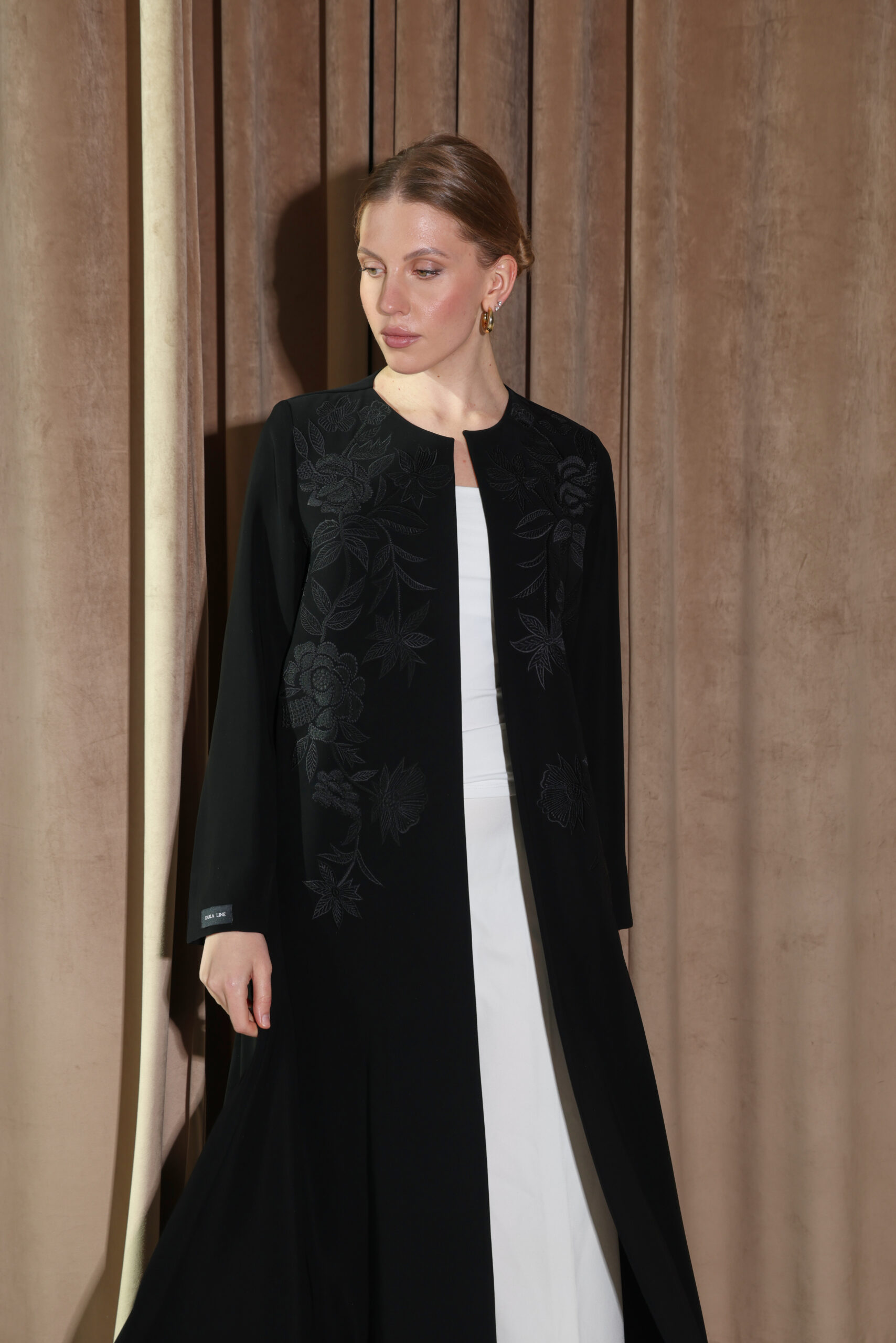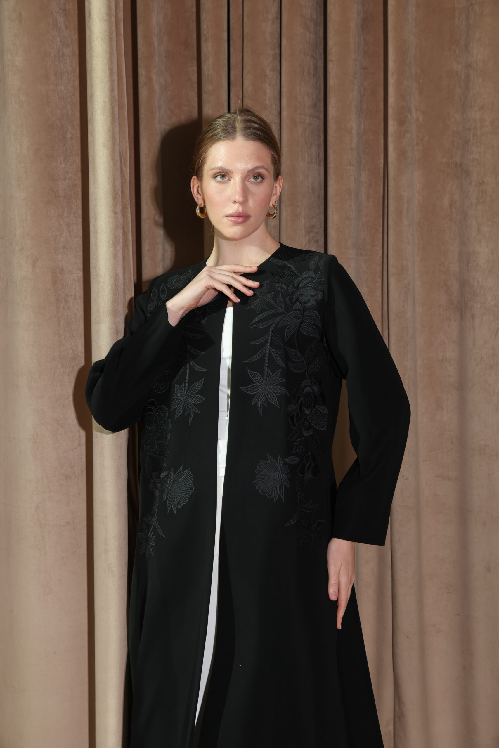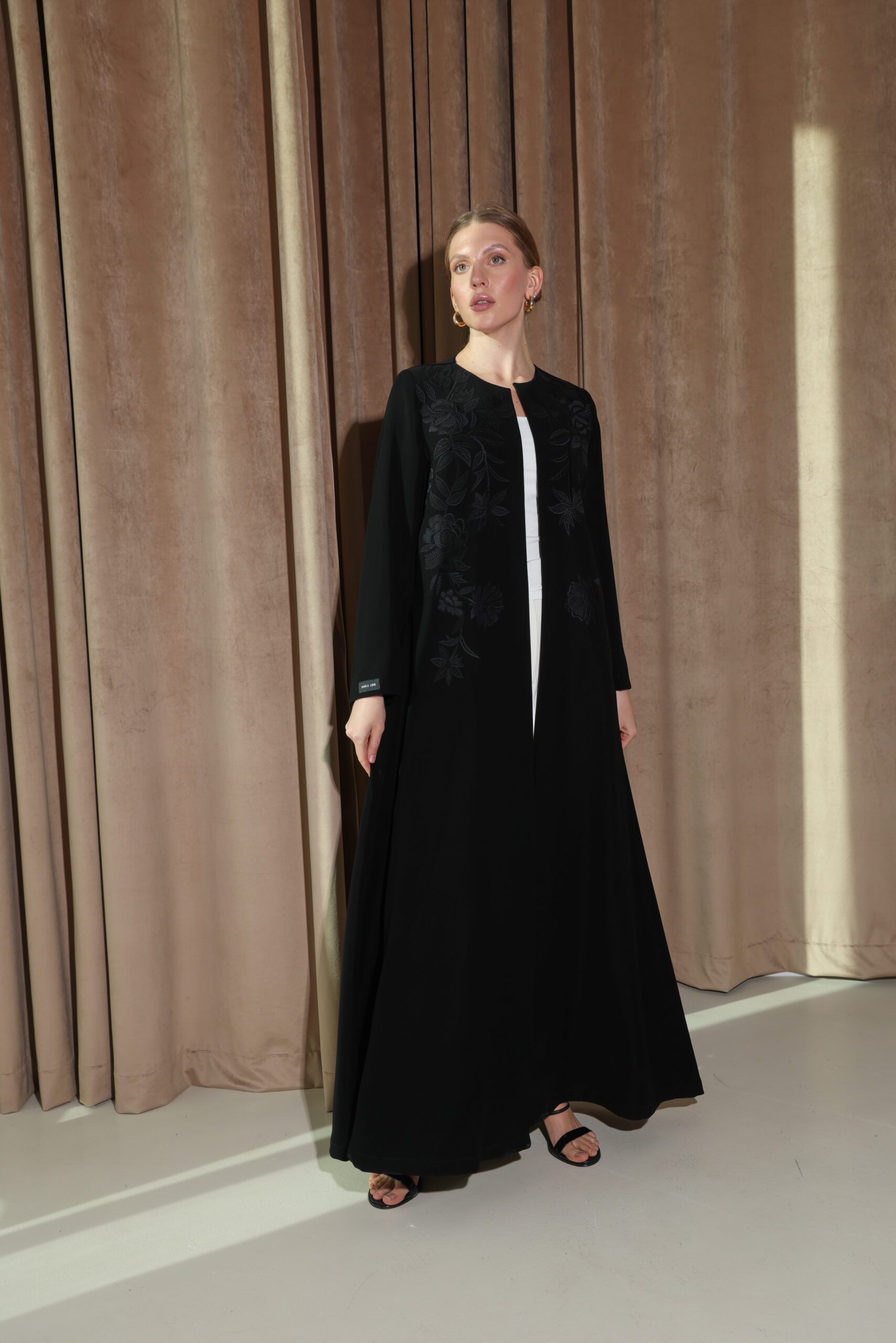 عباية سوداء بتطريز فاخر بلون العباية يبرز جمال التفاصيل