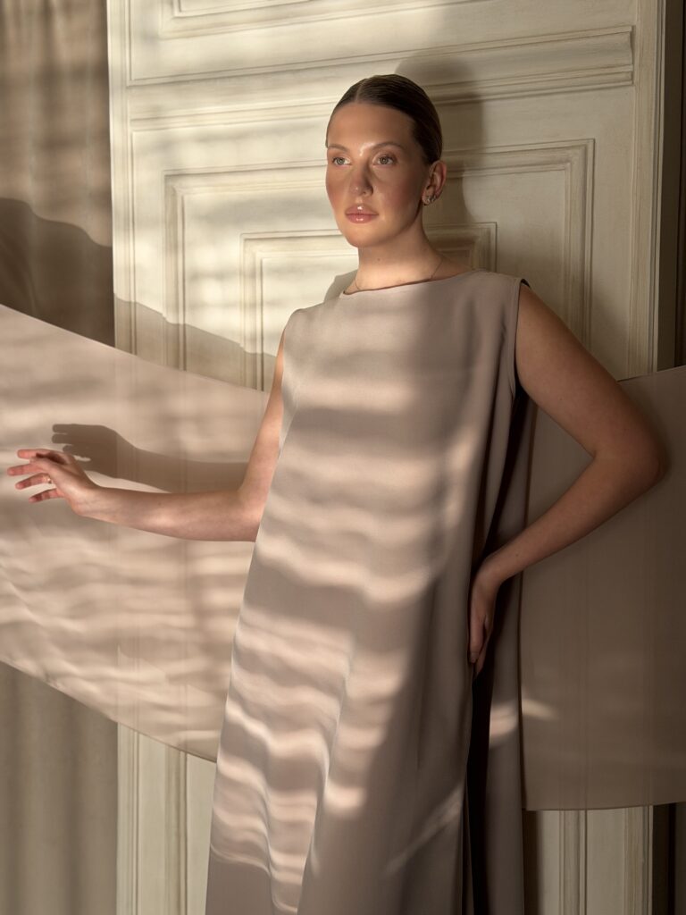 صممت هذه العباية بقماش اللنن الهندي ولمسات تطريز مستوحاة من جمال التراث بأسلوب عصري’ قطعة مميّزة تليق بكِ